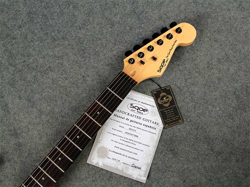 The SEST202 is a high-performance electric guitar with various color and tuning peg options. The body is made of basswood, paired with a 22-fret rosewood fretboard and premium Sqoe chrome-plated, fully enclosed tuning pegs, delivering an exceptional playing feel.