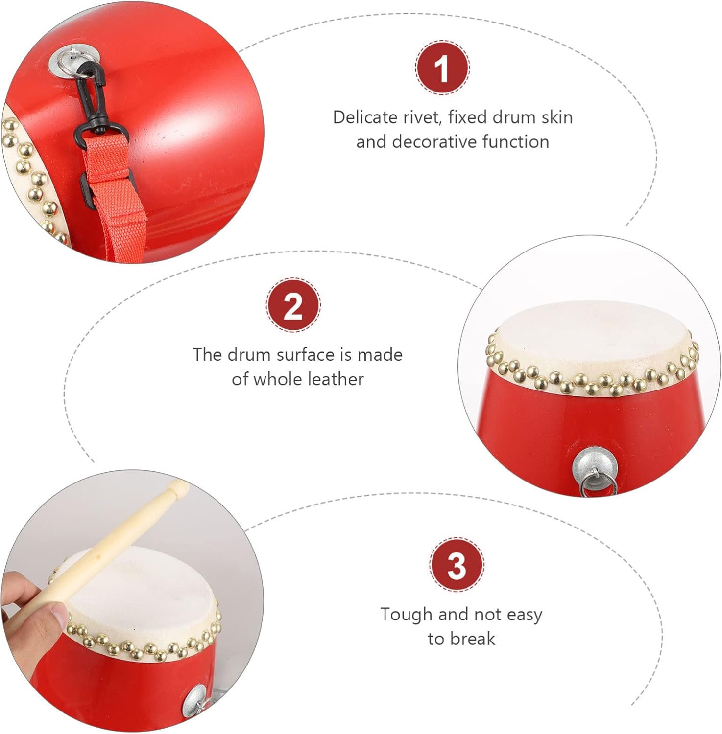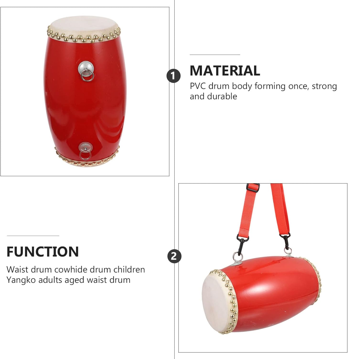 The battle drum is a powerful and rhythmic drum with a crisp and exciting sound. War drums can inspire people's courage and fighting spirit, and are often used in martial arts, folk dances and wars.