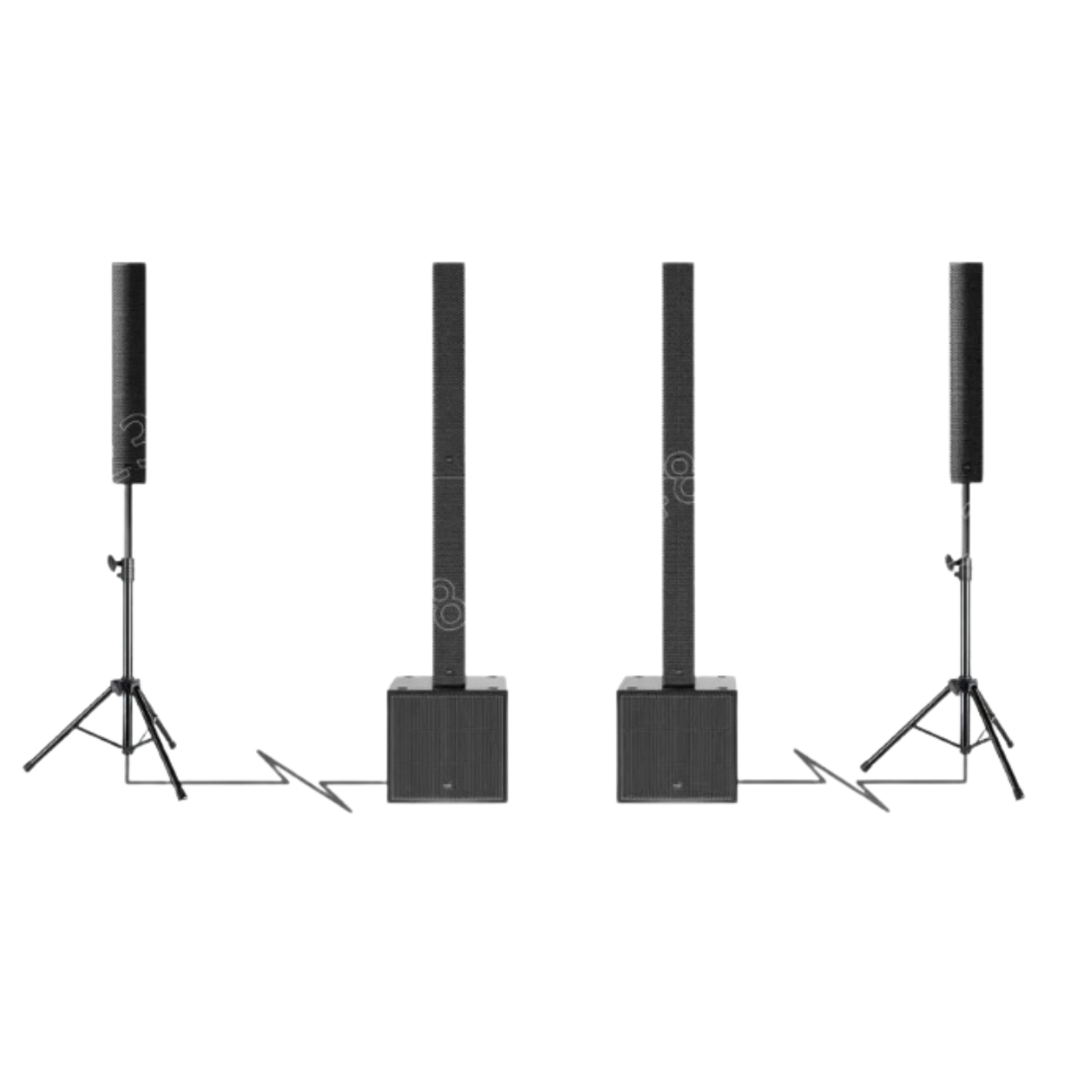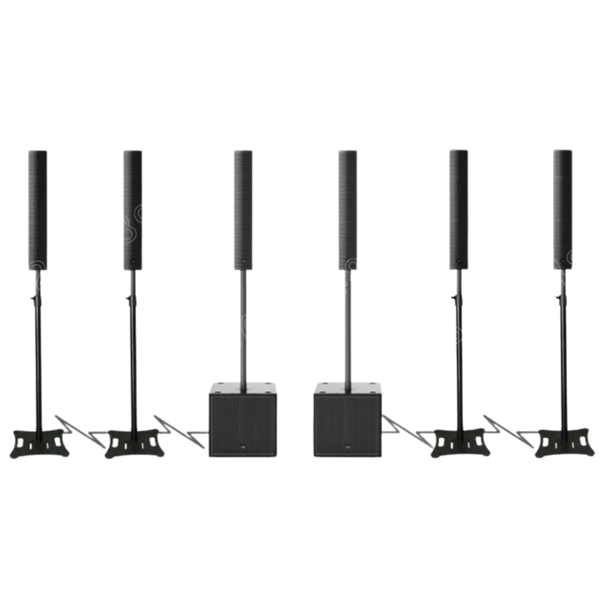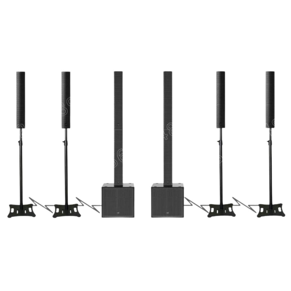 包含 4 個高音單元,提供清晰高頻;附 4 個低音揚聲器,提供強大低音;無需支架,易於任意放置;適合靈活節省空間設置。