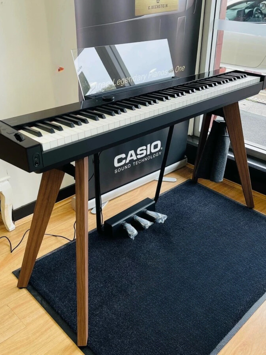 88鍵數位鋼琴,搭載多維度演變AiR音源與智慧型混合鎚動鍵盤,提供400種音色與真實鋼琴觸感,配32W四揚聲器空間音響系統,適合居家與舞臺演出。支援藍芽音訊/MIDI、麥克風輸入與Casio Music Space應用程式,具錄音與教學功能。包含順豐送貨上門、X型贈品琴椅(可加$480升級實木可調琴椅)、固定三踏板與支架,尺寸134.0cm x 24.2cm,重14.8公斤(不含支架)。