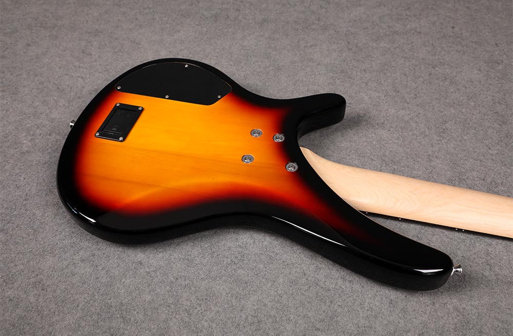 椴木琴體與背側板搭配亮光漆面,呈現經典質感,顏色選項包括日落色、紅色、藍色、黑色、白色。玫瑰木指板(24品)無貝殼鑲嵌,保持簡約美感。全封閉鍍鉻銀色弦鈕提升穩定性,琴頸與琴體平衡,適合長時間演奏。尺寸約111.8cm長,重量約4.5公斤(參考同類電貝斯),便於攜帶與存放。