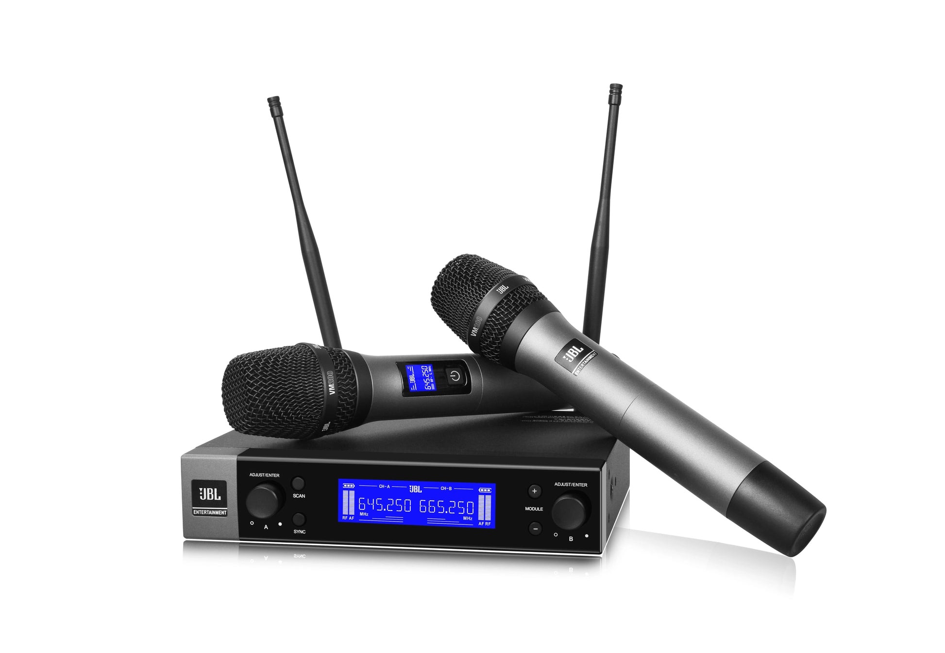 JBL VM200 是一款雙通道無線麥克風系統,提供豐富聲音與簡單設定,適用於 KTV 場合。
